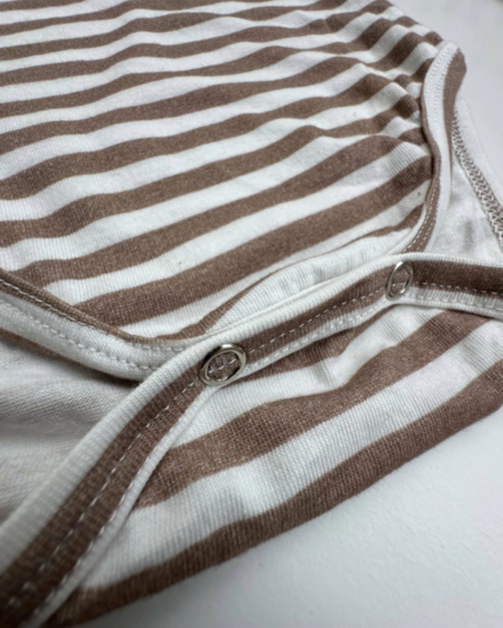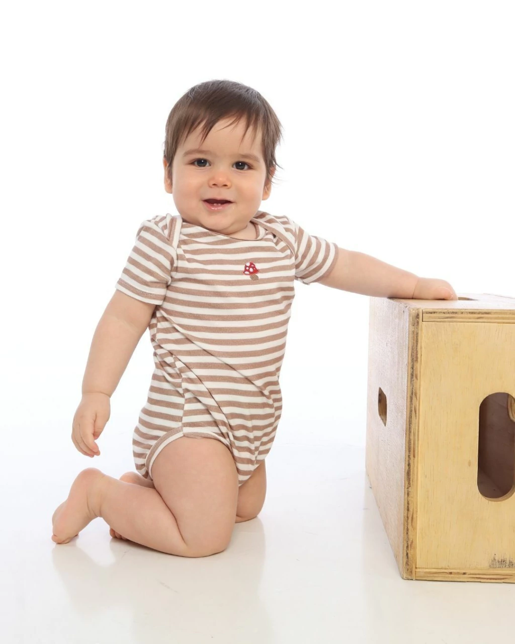 O body infantil, com sua gola envelope, torna a troca de roupa mais fácil.