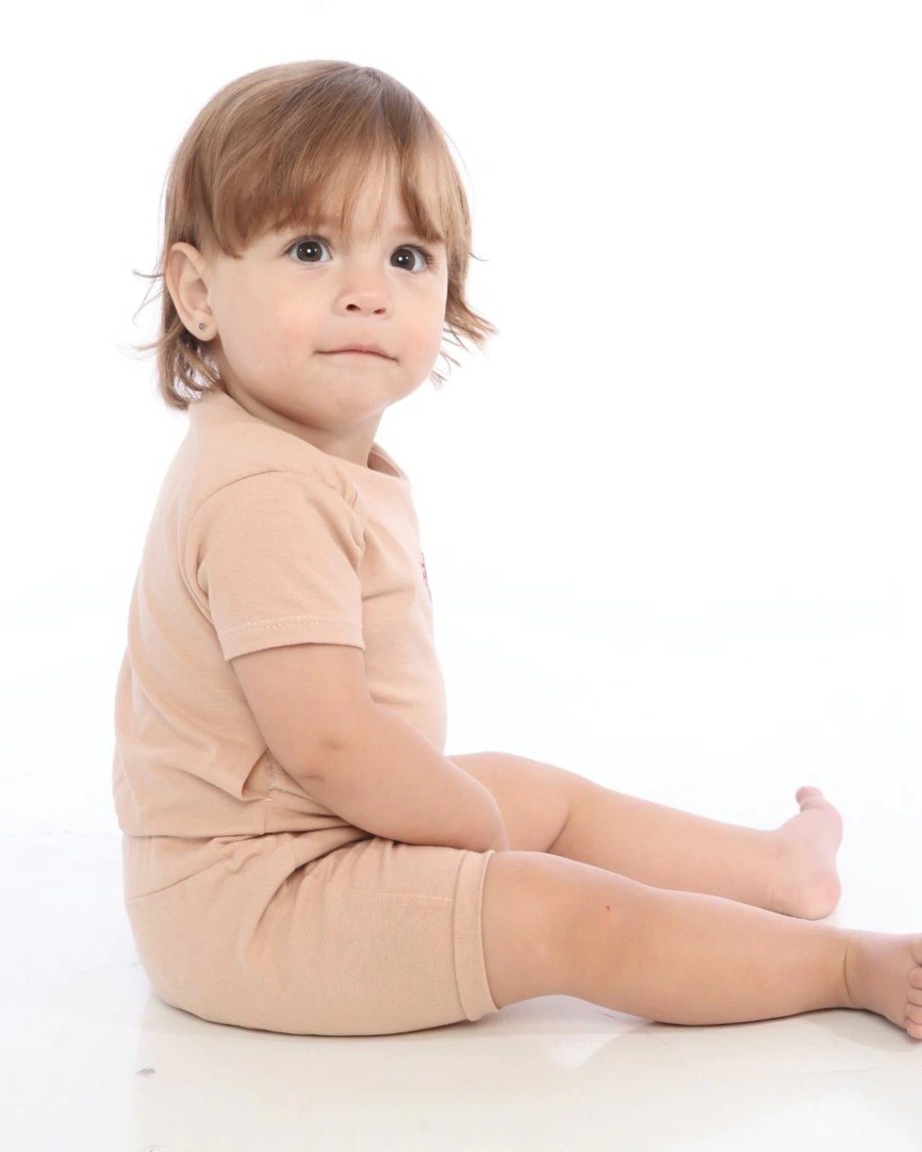 O cotton com sua leve elasticidade é uma ótima escolha para deixar os minis bem soltinhos para brincar e se divertir.