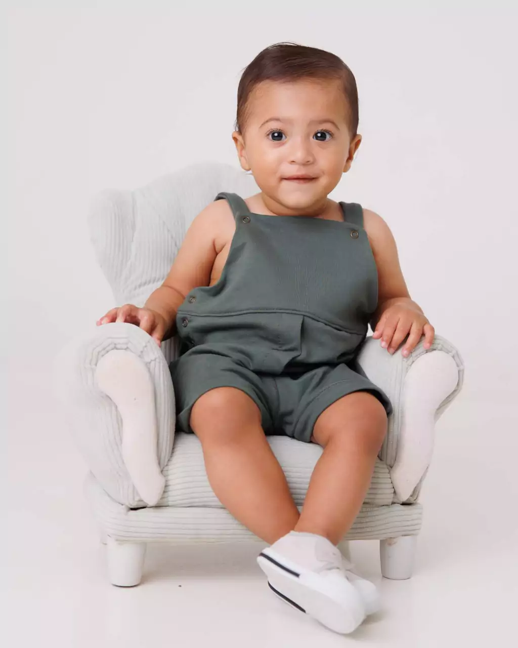 O macacão infantil Théo é produzido com molecotton, possui um toque muito macio e confortável.